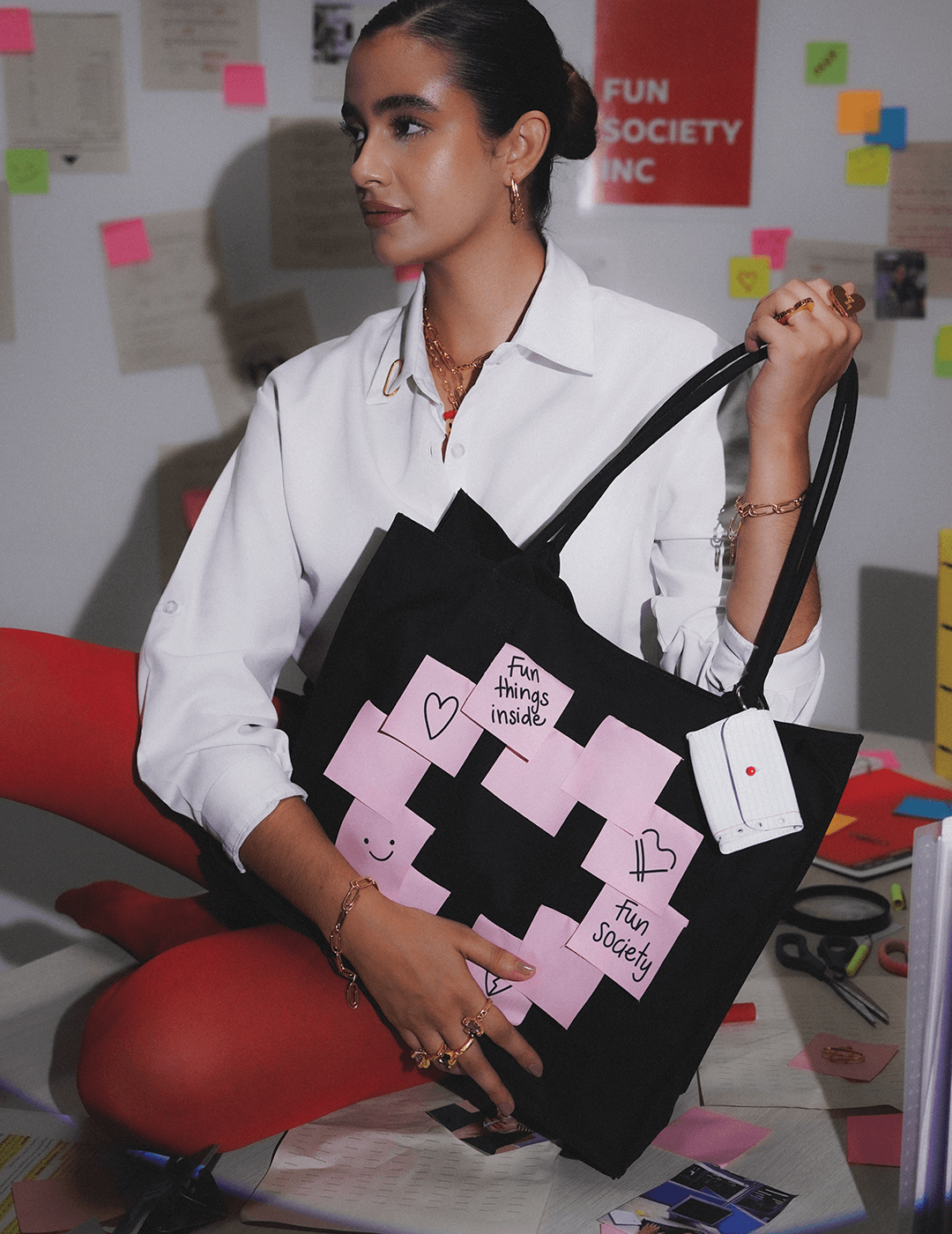 El bolso esencial para tus días de oficina. ¡Fun things inside! 📝🖤